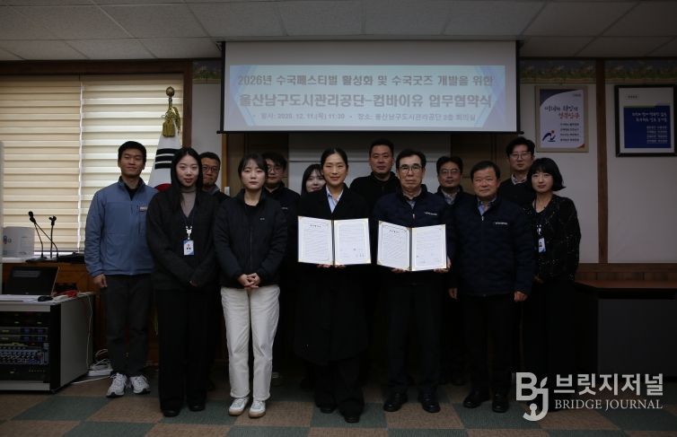 브릿지저널 윤나영 기자 | 울산남구도시관리공단은 11일 2026년 장생포 수국 페스티벌 활성화와 수국굿즈(상품) 개발을 위해 컴바이유(대표 김유연)와 업무협약을 체결했다.