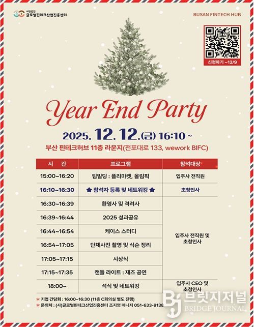 시는 오늘(12일) 오후 4시 부산국제금융센터(BIFC)에서 입주기업 및 협력기관과 함께 한해 성과를 확산하고 산·관 협력체계를 강화하기 위해 '2025 부산 핀테크 허브 성과공유회'를 개최한다.