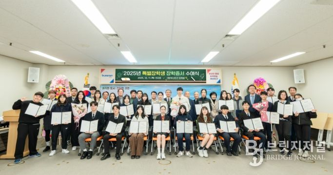 브릿지저널 윤나영 기자 | (재)부산진구장학회에서는 12월 11일 부산진구청 회의실에서 ‘2025년도 특별장학생’에 대한 장학증서 수여식을 가졌다고 밝혔다.