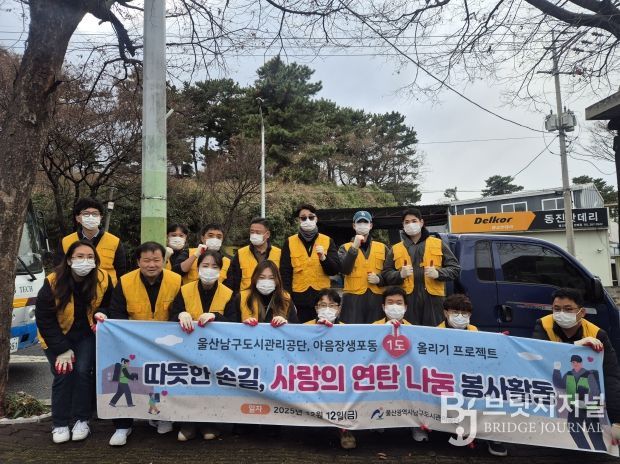 브릿지저널 윤나영 기자 | 울산남구도시관리공단은 12일 관내 취약계층의 따뜻한 겨울나기를 돕기 위해 저소득층 가정에 연탄 350장을 전달하는 ‘사랑의 연탄’ 봉사활동을 실시했다.