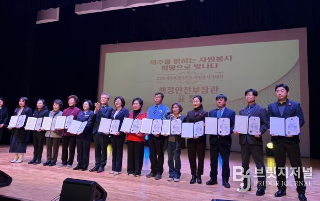 브릿지저널 정보영 기자 | 제주삼다수를 생산·유통하는 제주특별자치도개발공사(사장 백경훈)는 지난 10일 설문대여성문화센터에서 열린 '2025 제주도자원봉사자대회'에서 ‘2025 대한민국 자원봉사대상’ 행정안전부장관 표창을 수상했다고 밝혔다.