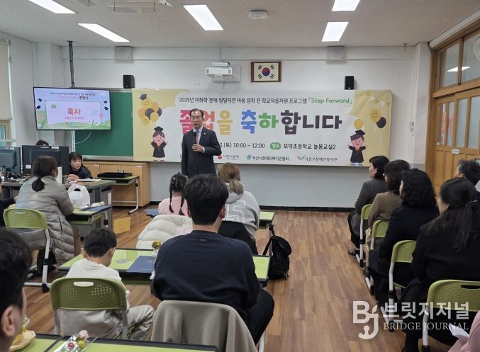브릿지저널 윤나영 기자 | 부산 사상구는 사상구장애인복지관(관장 정희정)이 지난 12월 13일, 초등학교 입학을 앞둔 발달장애 등 아동의 학교 적응력과 사회성 향상을 위한 예비학교 프로그램 『Step Forward』 졸업식을 진행했다고 밝혔다.