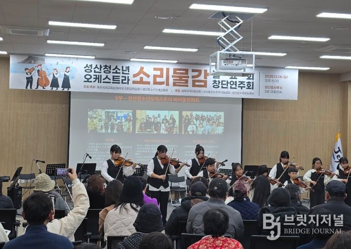 브릿지저널 정보영 기자 | 제주도교육청 제주국제교육원은 14일 오후 5시 성산읍사무소 대회의실에서 제주특별자치도 교육감을 비롯 도의원, 지역인사, 보호자, 주민 등이 참석한 가운데 ‘성산청소년오케스트라 소리물감 창단연주회’를 개최했다.