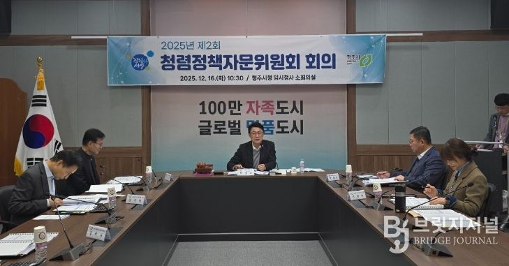 브릿지저널 김경미 기자 | 청주시는 16일 임시청사 소회의실에서 2025년 제2회 청렴정책자문위원회를 열고 시 산하 부서의 청렴 실천 우수사례 평가 및 2026년 청렴교육의 방향과 주요 과제 논의를 진행했다.
