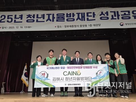 브릿지저널 김경미 기자 | 김해시는 지난 16일 정부세종청사에서 열린 행정안전부 주관 2025년 청년자율방재단 성과공유회서 김해시 청년자율방재단이 ‘국가재난관리 유공’ 행정안전부 장관 표창을 수상했다고 17일 밝혔다.