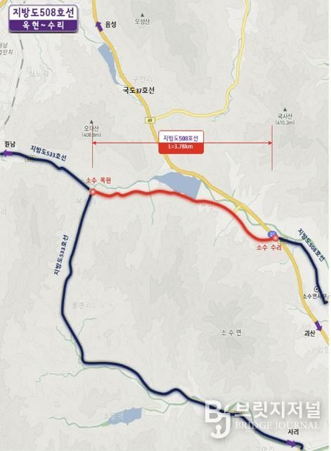 브릿지저널 김경미 기자 | 충북 괴산군은 지방도508호선 소수면 옥현리에서 수리를 연결하는 ‘옥현~수리 도로개량공사 기본 및 실시설계용역’에 착수한다고 17일 밝혔다.