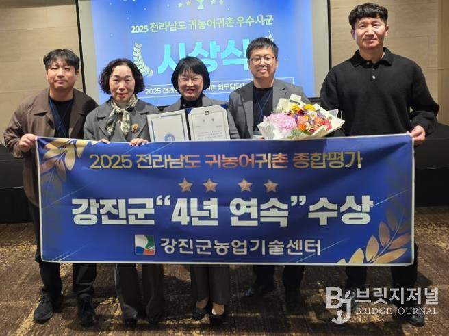 브릿지저널 김경미 기자 | 강진군이 ‘2025 전라남도 귀농어귀촌 종합평가’에서 4년 연속 우수 지자체로 선정되며 지방소멸 위기 극복과 귀농정책의 선도 모델로 주목받고 있다.