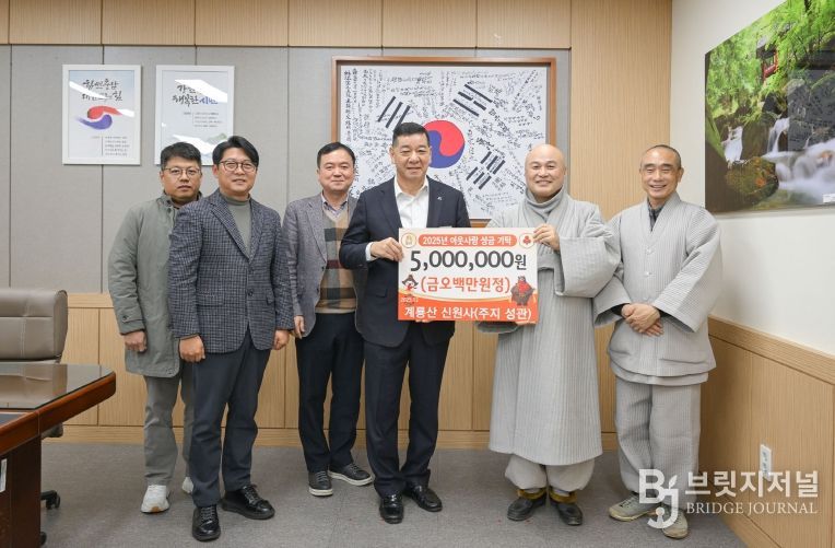 브릿지저널 정보영 기자 | 공주시는 대한불교조계종 신원사가 지난 16일 시청 상황실에서 이웃돕기 성금 500만 원을 전달했다고 밝혔다.