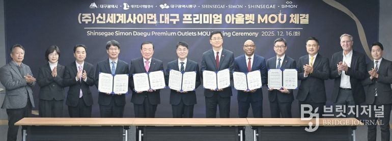 브릿지저널 김진석 기자 | 대구 동구청은 지난 16일 대구시 산격청사 대회의실에서 ‘신세계사이먼 프리미엄 아울렛’ 조성을 위한 업무협약(MOU)을 체결했다.