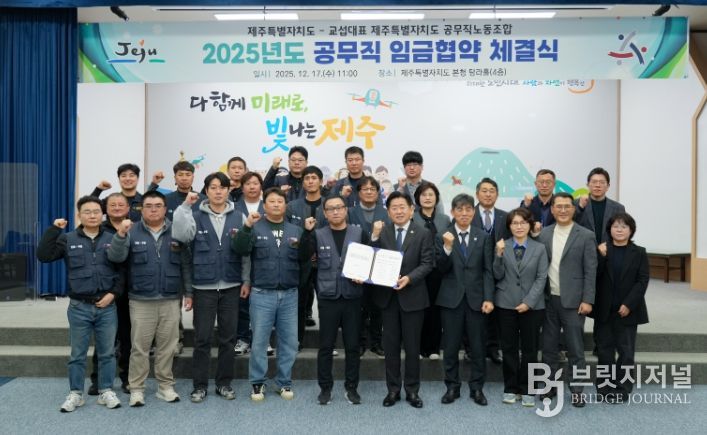 브릿지저널 정보영 기자 | 제주특별자치도와 제주도 공무직노동조합은 2025년도 임금협약을 통해 기본급 3.0% 인상과 함께 수당 중심의 임금체계를 기본급 중심으로 개편하고, 정기승급일 개선 등 처우 개선에 합의했다.
