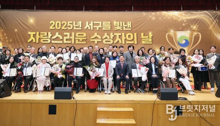 브릿지저널 정보영 기자 | 대전 서구는 17일 구청 구봉산홀에서 한 해 동안 지역사회 각 분야에서 헌신하며 서구 발전에 기여한 구민들의 공로를 기리는 ‘2025년 서구를 빛낸 자랑스러운 수상자의 날’ 행사를 개최했다.
