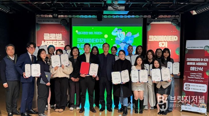 브릿지저널 김진석 기자 | 대구광역시와 대구문화예술진흥원은 지난 12월 16일 대구예술발전소 수창홀에서 대구관광 SNS 기자단 ‘크리에이터D’와 외국인 기자단 ‘글로벌 서포터즈’ 대상으로 해단식을 개최하며 성황리에 활동을 종료했다.