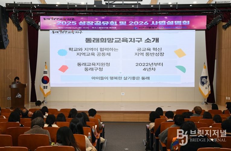 브릿지저널 윤나영 기자 | 부산 동래구는 지난 15일 동래구청 동래홀에서 동래교육지원청과 함께 ‘2025년 성장공유회 및 2026년 사업설명회’를 성황리에 개최했다고 밝혔다.