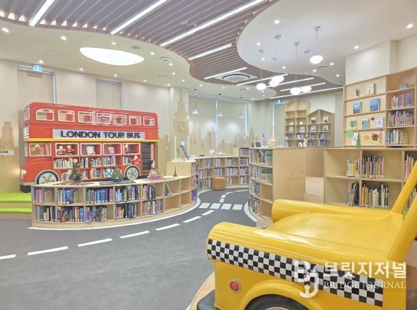 2층 어린이 독서공간은 기존 1층에서 보다 넓은 2층 공간으로 이전해 정형화된 서가 배치를 벗어난 자유로운 공간으로 조성했다. 또한 런던과 뉴욕을 콘셉트로 한 조형물 등 다양한 재미 요소들을 통해 기존 딱딱한 도서관의 이미지를 탈피했다.