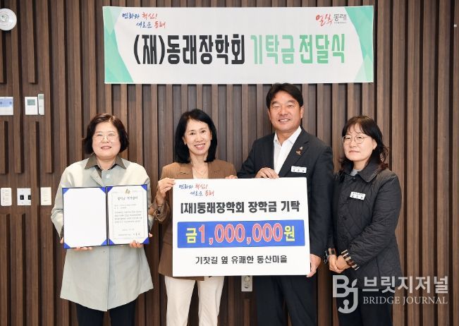 브릿지저널 윤나영 기자 | 부산 동래구는 지난 11월 수민동 기찻길 옆 유쾌한 동산마을이 올해도 (재)동래장학회에 장학기금 100만 원을 기탁했다고 밝혔다.
