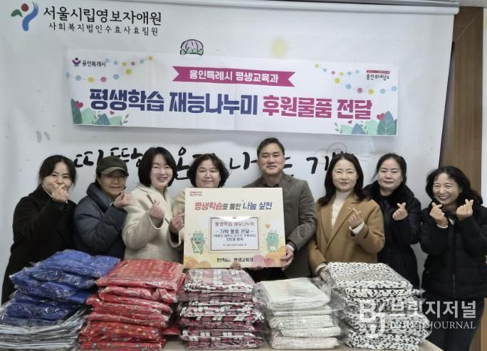 브릿지저널 김경미 기자 | 용인특례시는 18일 평생학습관·기흥평생학습관 ‘평생학습 재능나누미’ 수강생들이 처인구 이동읍에 있는 서울시립영보자애원에 직접 만든 턱받이, 무릎담요 등을 기탁했다고 19일 밝혔다.