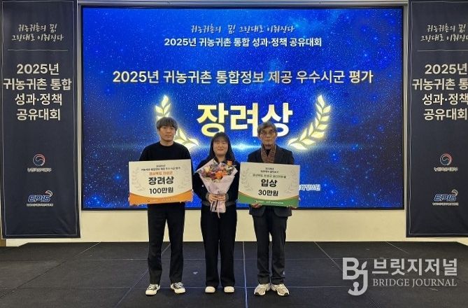 브릿지저널 정보영 기자 | 의성군은 농림축산식품부가 주관한 ‘2025년 귀농귀촌 통합 성과정책 공유대회’에서 ‘귀농귀촌 통합정보 제공 우수 시군 평가’ 부문 장려상을 수상했다고 밝혔다.