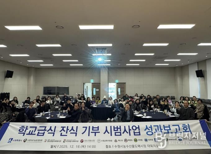 수원시는 18일 수원시 농수산물도매시장 대회의실에서 ‘2025년 학교급식 잔식 기부 시범사업 성과보고회’를 열었다.