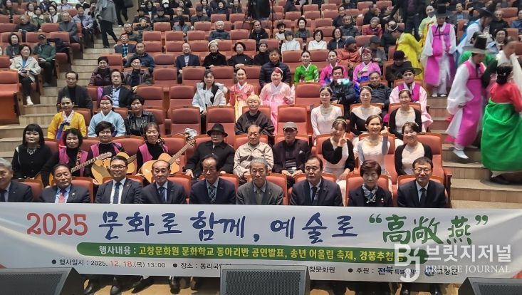 브릿지저널 윤나영 기자 | 고창문화원이 지난 18일 동리국악당에서 한 해를 마무리하는 송년 어울림 축제인 ‘2025 문화로 함께, 예술로 고창연(高敞燕)’ 행사를 성황리에 개최했다.