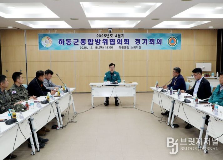브릿지저널 김경미 기자 | 하동군은 지난 18일 군청 소회의실에서 통합방위협의회 4분기 정기회의를 열어 국내외 안보 정세를 점검하고, 지역방위 체계 강화를 위한 협력 방안을 논의했다고 밝혔다.