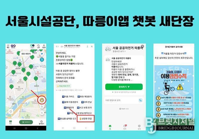 브릿지저널 김경미 기자 | 서울시설공단이 ‘따릉이’ 앱에 대화형 AI 챗봇을 도입해 시민들의 이용 편의를 한층 높인다. 기존의 단순한 상담 기능을 개선해, 19일부터 새롭게 업그레이드된 채팅 상담 기능을 선보인다.