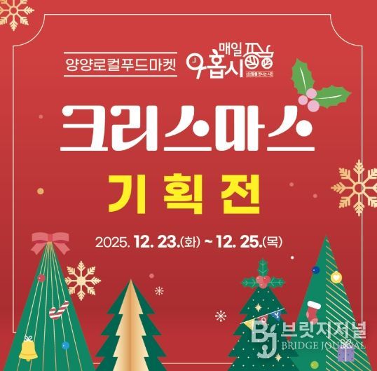 브릿지저널 윤나영 기자 | 양양로컬푸드마켓 ‘매일아홉시’가 크리스마스를 맞아 12월 23일부터 12월 25일까지 3일간 고객 대상 선물 증정 이벤트를 진행한다.
