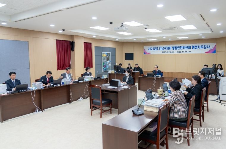 브릿지저널 김경미 기자 | 강남구의회 행정안전위원회는 제331회 제2차 정례회를 맞아 11월 18일부터 25일까지 총 8일간 중대재해예방실, 정책홍보실, 감사담당관, 행정국(동 주민센터 포함), 안전교통국 소관 부서에 대한 행정사무감사를 실시했다.