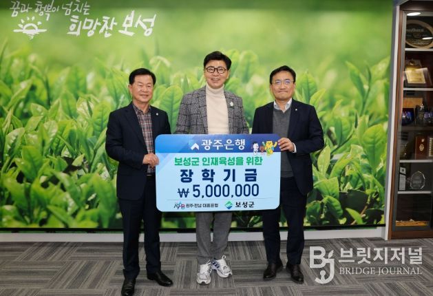 브릿지저널 김경미 기자 | 보성군은 지난 18일, 연말을 맞아 보성축협과 광주은행 보성지점이 각각 500만 원씩, 총 1,000만 원의 장학금을 (재)보성군장학재단에 기탁하며 지역사회에 따뜻한 나눔을 전했다고 밝혔다.