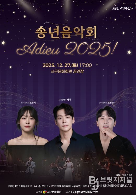 브릿지저널 김진석 기자 | 서구문화회관은 국내 뮤지컬 무대를 평정하고 있는 배우들과 함께 올 한 해 가장 빛나는 시간을 선물하고자‘송년음악회 아듀! 2025’를 12월 27일 오후 5시 서구문화회관 공연장에서 개최한다.