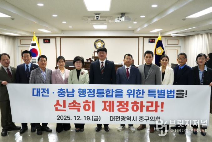 브릿지저널 정보영 기자 | 대전광역시 중구의회 김석환 의원은 2025년 12월 19일, '대전충남특별시 설치 및 경제과학수도 조성을 위한 특별법'의 조속한 국회 심의·의결을 촉구하는 결의안을 대표발의하고, “더 이상의 지연은 지방 소멸을 사실상 방조하는 것”이라며 국회의 즉각적인 결단을 강력히 요구했다.