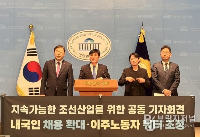 브릿지저널 윤나영 기자 | 김종훈 울산 동구청장은 변광용 거제시장, 김태선 국회의원과 함께 12월 22일 오전 11시 20분 국회 소통관에서 공동 기자회견을 열고, 조선산업의 지속 가능한 성장과 국가 경쟁력 강화를 위해 내국인 정규직 채용 확대와 균형 잡힌 인력 운영 정책 마련을 정부와 기업에 촉구했다.