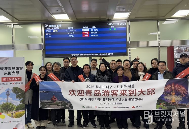 브릿지저널 김진석 기자 | 대구광역시와 대구문화예술진흥원 관광본부는 대구국제공항에서 ‘칭다오-대구’ 신규 노선 취항을 맞아 중국인 관광객을 위한 환영 행사를 마련하고 본격적인 맞이에 돌입했다.