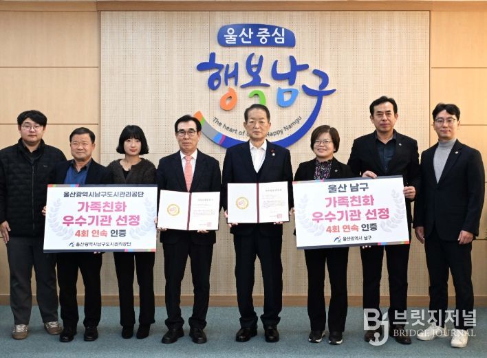 브릿지저널 윤나영 기자 | 울산 남구는 성평등가족부가 주관하는 ‘2025년 가족친화 인증’ 재인증 기관으로 선정돼 4회 연속 가족친화 인증을 획득했다고 19일 밝혔다.