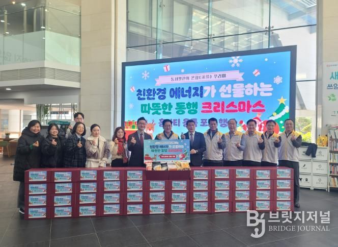 브릿지저널 윤나영 기자 | 울산 강북교육지원청은 22일 한국동서발전㈜ 울산 본사에서 1,500만 원 상당의 크리스마스 음식 꾸러미 200세트를 전달받았다.