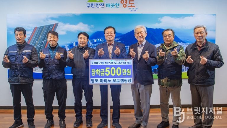 브릿지저널 윤나영 기자 | 영도 마리노 오토캠핑장(기간제근로자 일동)은 지난 12월 19일 영도구청을 방문하여 우수한 지역인재 양성을 위해 (재)행복영도장학회에 500만 원을 기탁했다.