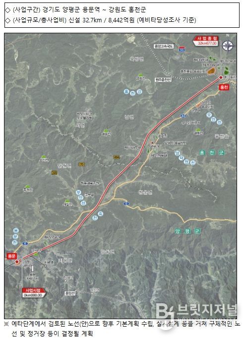 브릿지저널 정보영 기자 | 국토교통부는 12월 22일 열린 재정사업평가위원회(기획재정부 주관)에서 용문~홍천 광역철도 건설사업이 예타를 통과하고, 증평-호법 등 2개 고속도로 확장사업이 예타 대상 사업에 선정됐다고 밝혔다.
