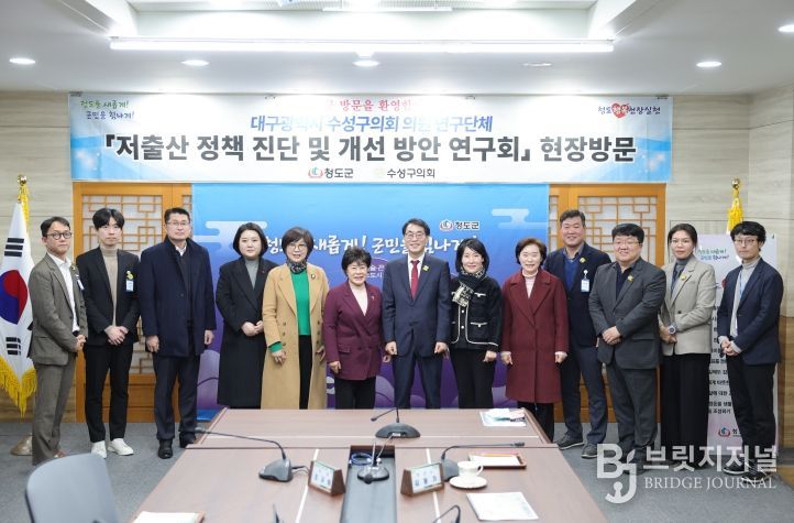 브릿지저널 김진석 기자 | 수성구의회 의원연구단체 '저출산 정책 진단 및 개선 방안 연구회'는 지난 22일 청도군을 방문해 체류형 생활인구 유입과 자생돌봄공동체 기반 저출산 대응 정책을 주제로 세미나 및 현장방문을 실시했다.