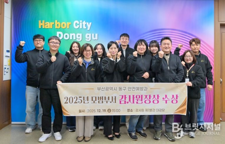 브릿지저널 윤나영 기자 | 부산 동구는 안전예방과가 감사원으로부터 모범부서로 선정돼 지난 19일 감사원에서 열린 2025년도 모범사례 포상행사에서 감사원장 표창을 받았다고 밝혔다.