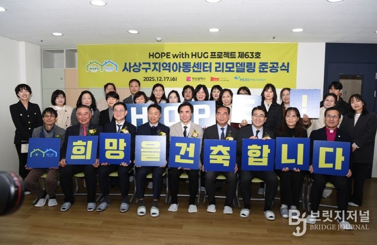 브릿지저널 윤나영 기자 | 부산 사상구는 지난 17일, 부산광역시·부산국제건축제조직위원회·주택도시보증공사(HUG)가 공동 주관하는 2025년 ‘HOPE with HUG’ 프로젝트에 선정된 사상구지역아동센터의 노후 시설 리모델링 공사를 완료하고 준공식을 개최했다고 밝혔다.