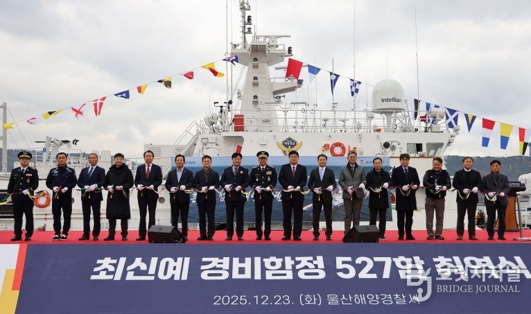 브릿지저널 윤나영 기자 | 울산해양경찰서는 23일 14시 울산항 일반부두에서 최신예 경비함정인 527(태극27호)함의 취역식 행사를 가졌다고 밝혔다.