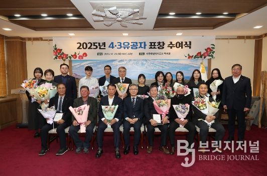 브릿지저널 정보영 기자 | 진명기 행정부지사는 23일 오전 10시30분 도청 백록홀에서 ‘2025년도 4·3유공자 표창 수여식’을 개최하고 제주4·3진상규명 및 4·3희생자 및 유족 명예회복 등에 기여한 도민과 공무원 22명에게 도지사 표창을 수여했다.