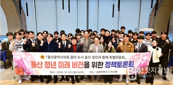 브릿지저널 윤나영 기자 | '울산광역시의회 꿈의도시 울산 청년과 함께 특별위원회'(위원장 권순용)는 23일 오후 4시 보람컨벤션에서 울산 청년 미래 비전을 위한 정책 토론회를 개최했다.