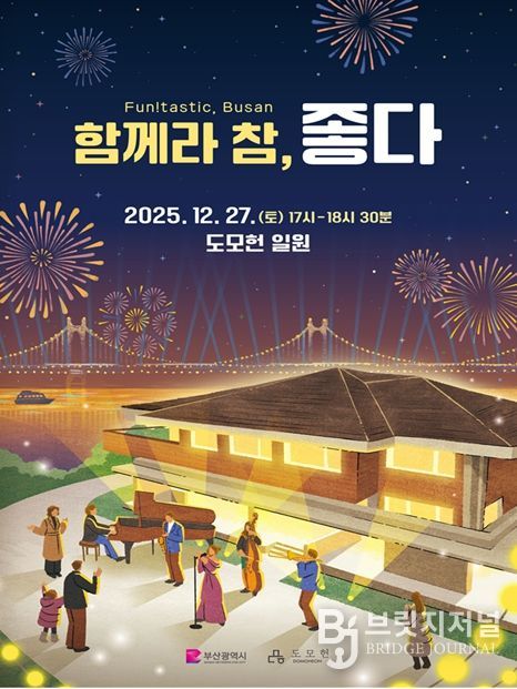 브릿지저널 윤나영 기자 | 부산시는 오는 12월 27일 오후 4시 30분, 시민을 위한 열린 복합문화공간 도모헌(구 시장관사) 다할 강연장에서 시민 누구나 함께 즐길 수 있는 연말 콘서트 '함께라 참, 좋다 펀!타스틱 부산(Fun!tastic Busan)'을 개최한다고 밝혔다.