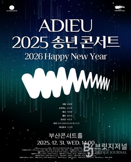 브릿지저널 윤나영 기자 | 클래식부산은 2025년 부산콘서트홀의 성공적인 개관과 완성도 높은 첫해를 함께한 시민들에게 감사의 마음을 전하기 위해 오는 12월 31일 오후 2시 부산콘서트홀에서 '아듀(ADIEU) 2025 송년 콘서트'를 개최한다고 밝혔다.