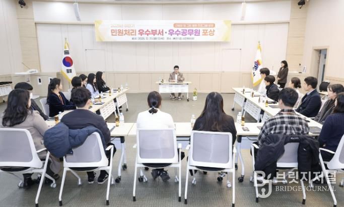 브릿지저널 윤나영 기자 | 삼척시는 12월 23일 시청 시민회의장에서 2025년 하반기 민원처리 우수부서와 우수공무원에 대한 포상식을 개최하여 민원 서비스 향상에 기여한 직원들을 격려했다.