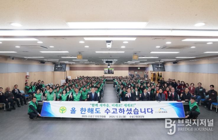 브릿지저널 김진석 기자 | 대구 수성구새마을회(회장 윤종현)는 지난 23일 수성구청 대강당에서 새마을지도자와 회원, 내빈 등이 참석한 가운데 ‘2025 수성구 새마을지도자 대회’를 개최했다.