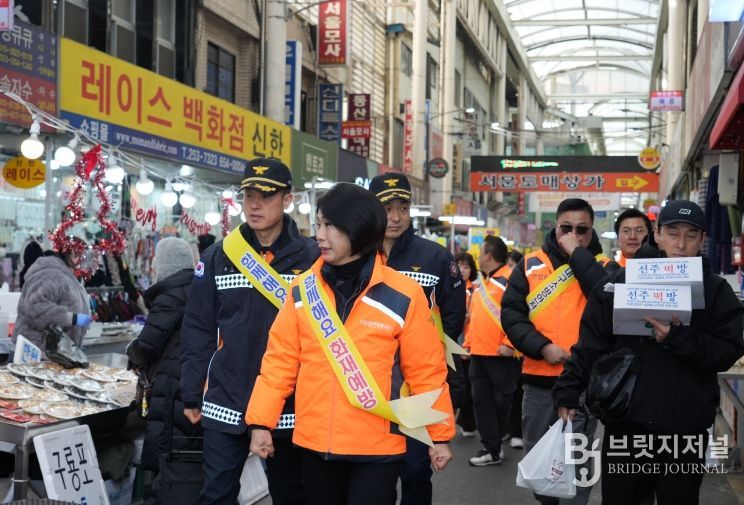 브릿지저널 김진석 기자 | 대구소방안전본부와 119시민안전봉사단연합회는 12월 23일 오전 11시, 겨울철 화재 위험이 높아지는 시기를 맞아 전통시장을 대상으로 화재예방 캠페인을 실시했다.