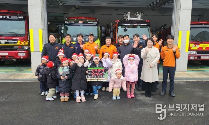 브릿지저널 김경미 기자 | 충북 증평 홍익어린이집(원장 김민지) 원아들이 연말을 맞아 지역 소방관들에게 따뜻한 감사의 마음을 전했다.