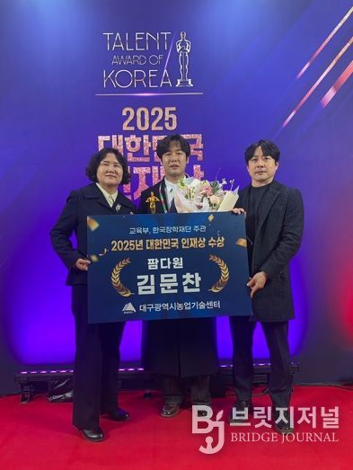 브릿지저널 김진석 기자 | 대구 청년농업인 김문찬 팜다원 대표가 12월 24일 세종시 정부세종컨벤션센터에서 열린 ‘2025년 대한민국 인재상’ 시상식에서 대한민국 인재상을 수상했다.