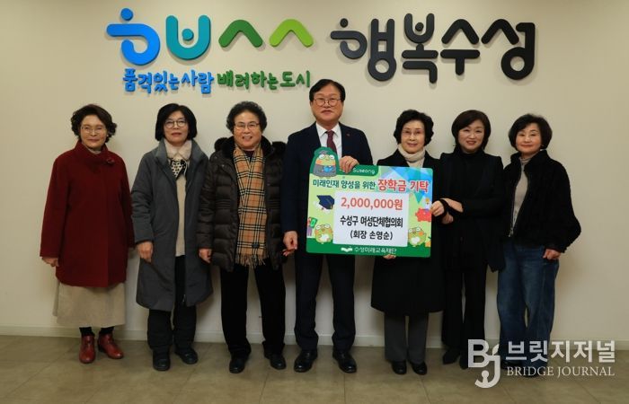 브릿지저널 김진석 기자 | 대구 수성구여성단체협의회는 지난 23일 지역 교육 경쟁력 강화와 미래 인재 육성을 위해 장학금 200만 원을 수성미래교육재단에 기탁했다.